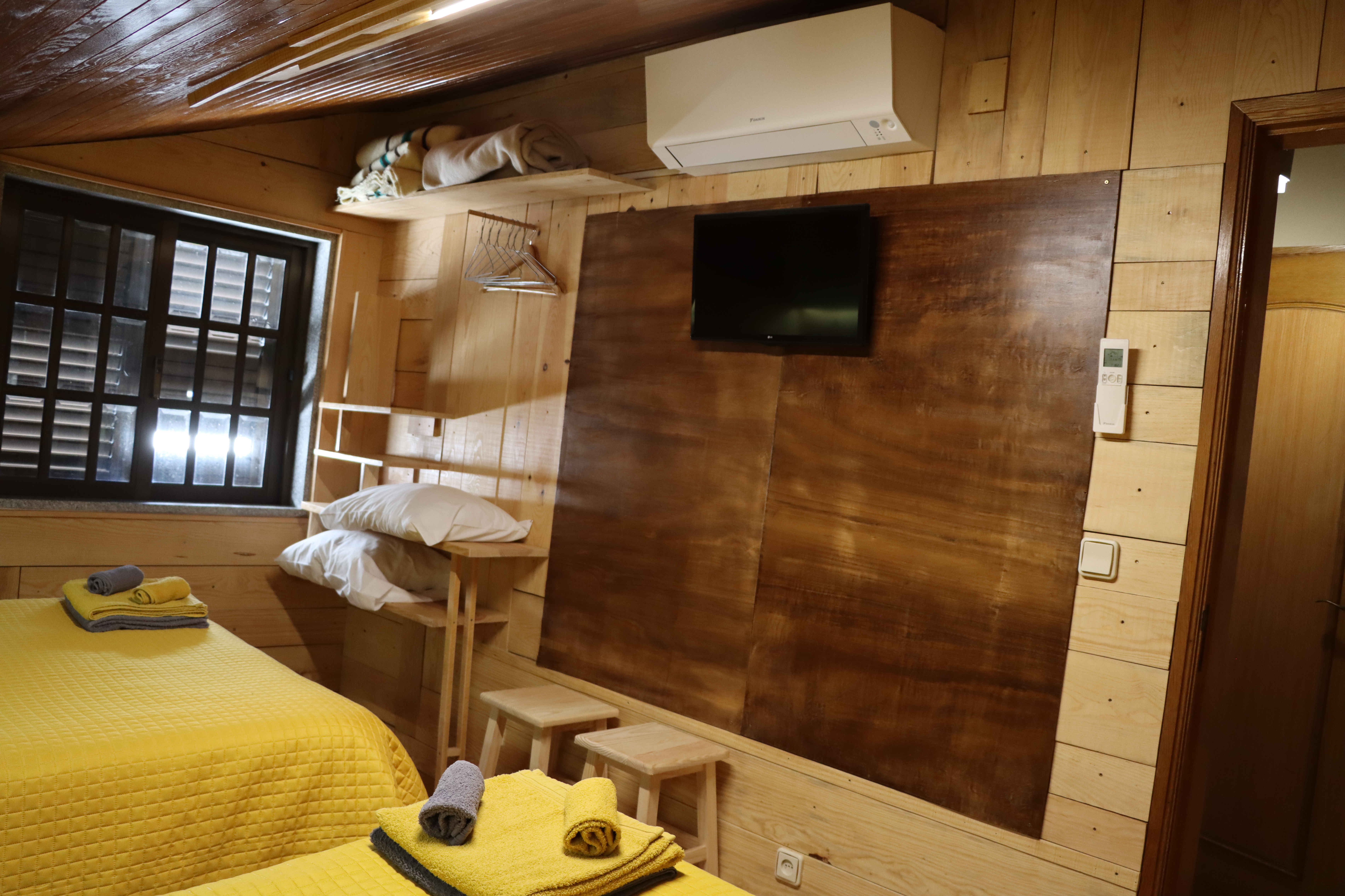Quarto Duplo (1 cama de casal) + Quádruplo (2 camas de casal) + 1 Casa de Banho Privativa. Ambos os quartos dispõem de Ar condicionado, Tv e Wi-Fi Gratuito.